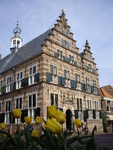 町には縦横それぞれ3、4本の道路が走っているだけで、ぐるりと歩いても1時間とかからないくらい小さな町ですが、高さ45mの鐘楼をもつ教会や写真のルネサンス様式の市庁舎など、17世紀の街並みがとてもよく残っているところなのです。