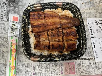 新所原の駅で天浜線へ乗り換え、駅舎にはうなぎ丼弁当を売っているお店が入...
