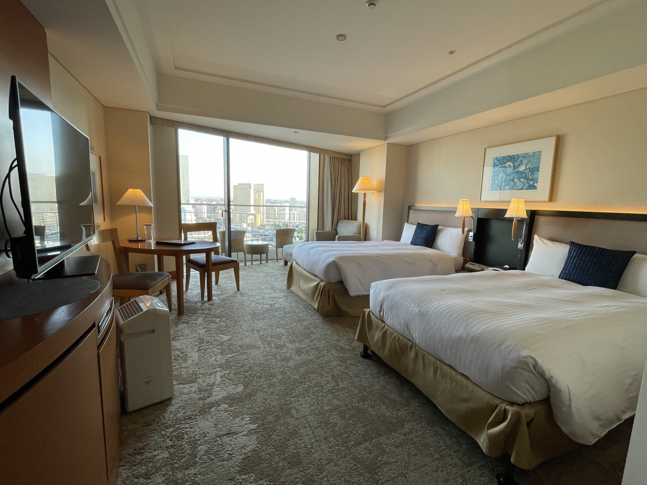 昨年に続いて2度目の宿泊になります。部屋はスタンダードツインですが、8階だったので京都タワーが少し見えて良かったです。ラウンジが充実していてチェックインと同時にウェルカムスイーツを頂き、ソーシャルアワーではアルコール類とおつまみのサービスがあります。前回は1杯だけとなっていましたが、今回はそういった規制はなく、日本酒の飲み比べなどもできて楽しめました。朝食は洋食系は少なく和食を中心とした内容で、前回とはラインナップも変わっていて季節メニューなのかおでんがありました。平日の朝早い時間だったからか混雑はそれ程でもなく、朝食を付けないで宿泊している人が多いのかもしれません。フロントや朝食、ラウンジのスタッフはどの方も対応が親切で、アメニティも豊富に揃っていて総合的に満足度が高いホテルです。