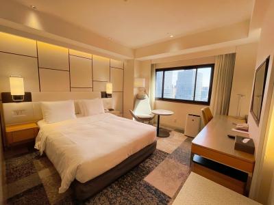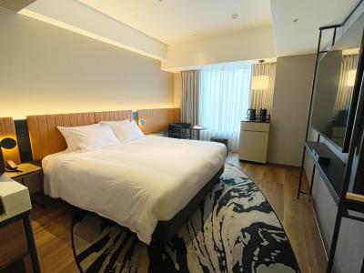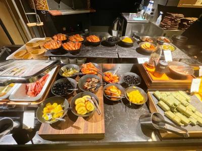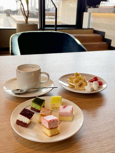 大晦日に宿泊、ラウンジアクセスのあるエグゼクティブルーム、バスタブ付きのお部屋でした。開業して間もないので設備は最新で、コンパクトですが機能的で使いやすく寛げました。予約時に誕生日と伝えたこともあり、お部屋にメッセージとお菓子のセットが置かれていて、ちょっとした心遣いが嬉しかったです。ラウンジはティータイムはケーキが数種類提供され、カクテルタイムはホットミールも少しありましたが、お酒のおつまみ程度の品数です。大晦日ということもあるせいか満席で、座れない人は隣接するルーフトップバーで飲食していました。