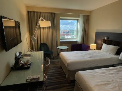 駅から徒歩5分程、地下道を通りますがエレベーターが設置されています。旧市街の中心地へも近く、周辺にはショッピングモールやスーパーもあります。高層ホテルなので上階に宿泊すると見晴らしが良く開放的です。スタンダードのお部屋でしたが広さも十分で設備も備わっており、バスタブもあって快適でした。