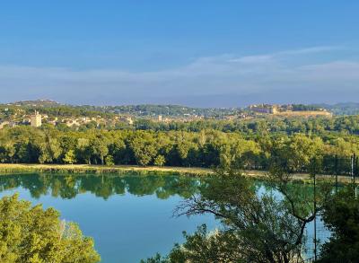 バルトゥラス島はローヌ川の中州に位置しています。対岸のロシェ・デ・ドン公園やサン・ベネゼ橋から眺めると良く見えます。公園近くには渡し船の乗り場があり、船に乗ってバルトゥラス島を行き来することができます。豊かな自然に囲まれた島で、川沿いにはベンチもあり、のんびりと散歩やジョギングしている人もいます。サン・ベネゼ橋や城壁に囲まれた旧市街の眺めが一望でき、夕暮れ時は特に美しかったです。