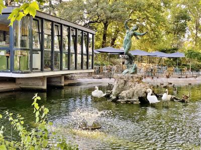 朝、法王庁広場からノートルダム・デ・ドン大聖堂へ行き、隣接する公園へ向かいました。岩壁の上にあるので坂道を上っていくと丘の斜面にはワイン畑が広がっているのが見えました。公園は緑豊かで庭園や池もあり、白鳥やカモが水浴び中でした。展望台からはローヌ川が見渡せ、サン・ベネゼ橋や対岸にあるフィリップ美貌王の塔とサンタンドレ要塞、さらに奥には平原が広がっている風景等とても良い眺めでした。