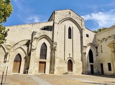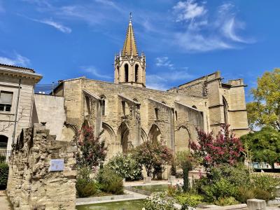 アヴィニョン観光案内所に隣接して建っていますが、残念ながら閉まっていました。何度か前を通りましたが扉が閉まったままで見学できるのか不明です。敷地内には公園や遺跡があり、寺院の外観を背景に景観も良いです。お花がとても綺麗に咲いていてベンチもあり地元の方々の憩いの場所の様でした。