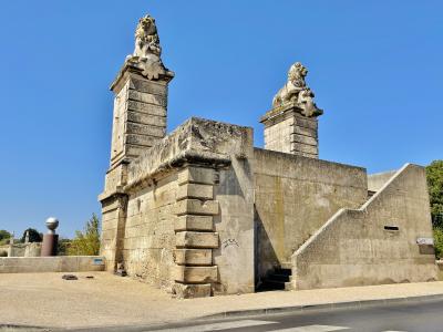 アルル駅から西へ、ローヌ川沿いにあります。アルル観光後、ローヌ川沿いを歩いて駅まで戻る途中に立ち寄りました。かつてはコンスタンティヌス橋がこの場所に架かっていたそうですが、現在はライオン像を残すのみです。対岸を含めて4頭おり、別名ライオン橋とも呼ばれています。