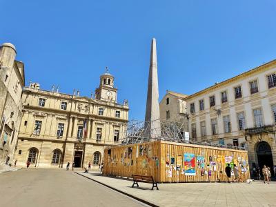 街の中心部にある広場です。それ程大きな広場ではないですが、中央にはオベリスクが建っていて、市庁舎やサン・トロフィーム教会が広場を囲むようにしてあります。訪れた時はオベリスクが工事中で一部囲まれていて、綺麗な景色が見れなかったことが残念でした。