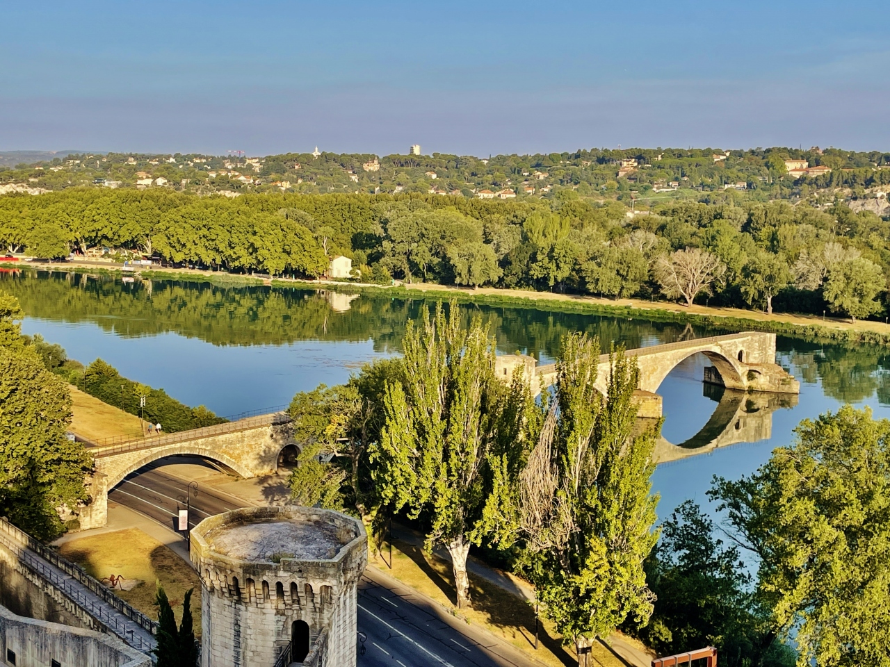 アヴィニョンのローヌ川にかかる橋です。サン・ベネゼ橋は途中で途切れてしまっているので、旧市街から歩いてローヌ川を渡る場合、この橋を渡ることになります。夕暮れ時、バルトゥラス島から旧市街の景色を眺めるために橋を渡って対岸へ向かいました。橋の上からは夕日照らされたサン・ベネゼ橋や教皇、大聖堂が見え、間近で眺めるのとはまた違った美しい光景でした。
