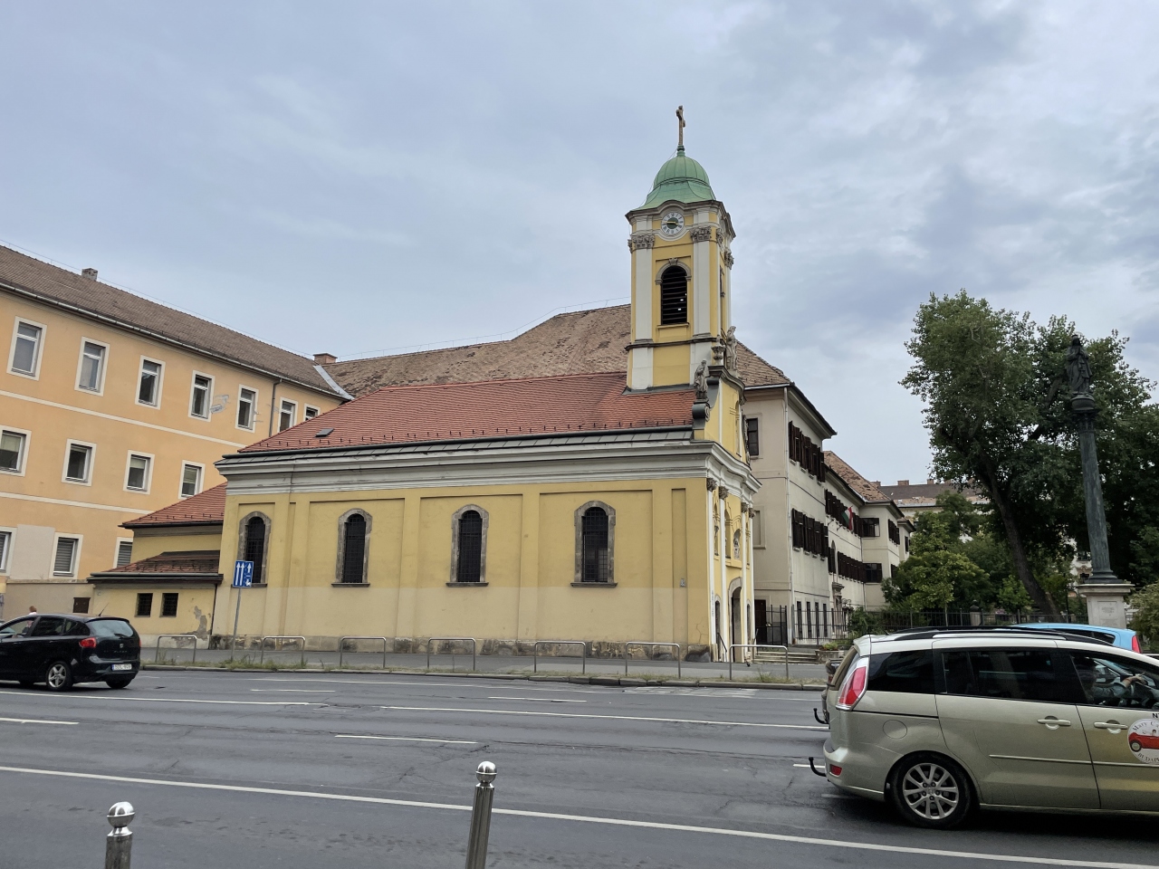 ラーコーツィ通り沿い、プラハルイザ広場駅とアストリア駅の間にあります。ホテルへ戻る途中に立ち寄りましたが、残念ながら扉が閉まっており外から眺めるのみでした。こじんまりとしていますが、クリーム色の外観が綺麗で印象的です。1838 年に起こったドナウ川の洪水にも耐え、その時の水位が記されているそうです。