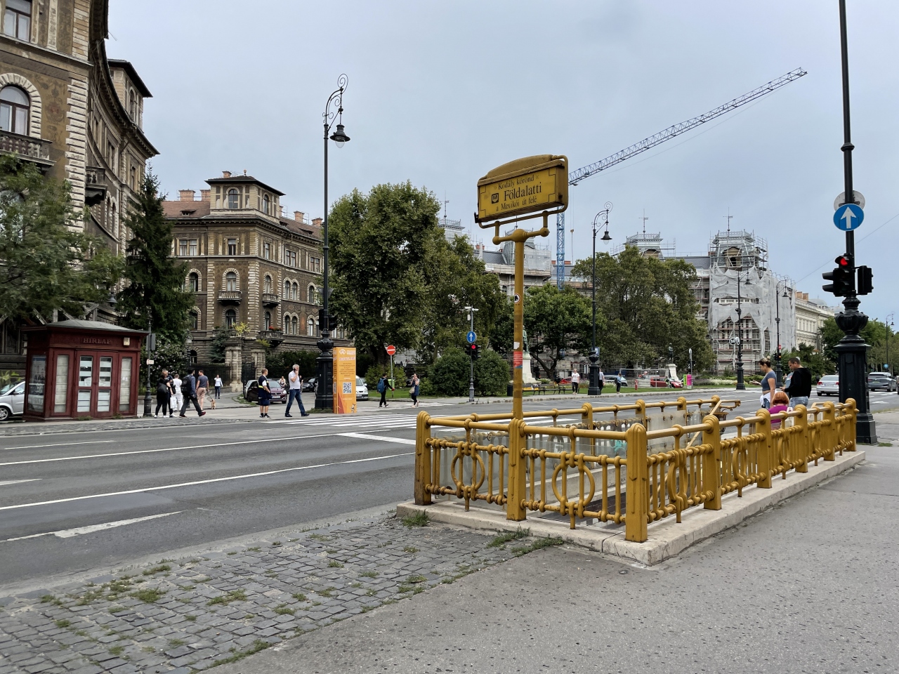 国会議事堂の最寄り駅です。国会議事堂前の広場がそのまま駅名になっています。国会議事堂を見学後、ブダ地区にある王宮の丘へ地下鉄で向かいました。ドナウ川の下を渡るため、駅のホームまでは長いエスカレーターを下ります。国会議事堂へはドナウ川沿いを走るトラムでもアクセスできます。朝の散歩中に利用しましたが、景色も良いのでお勧めです。