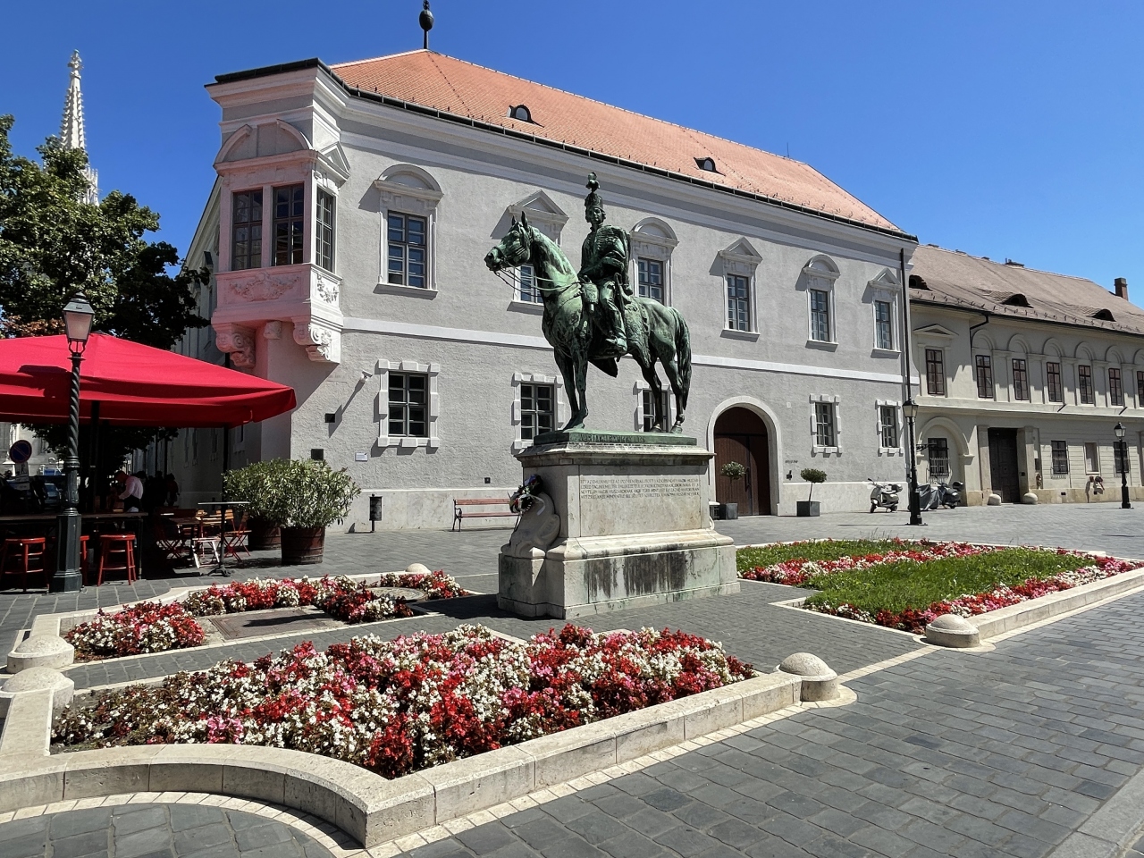 マーチャーシュー教会前にある三位一体広場から西へ少し進んだ先にあります。アンドラス・ハディクの騎馬像で1937年に建てられました。あまり大きな騎馬像ではないですが、お花が植えられていてよく手入れされていました。周辺はレストランやカフェがあり、ちょうどお昼時だったので観光客で賑わっていました。