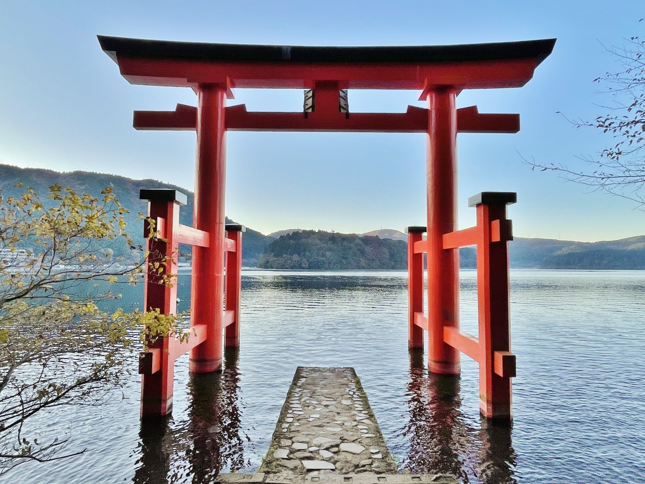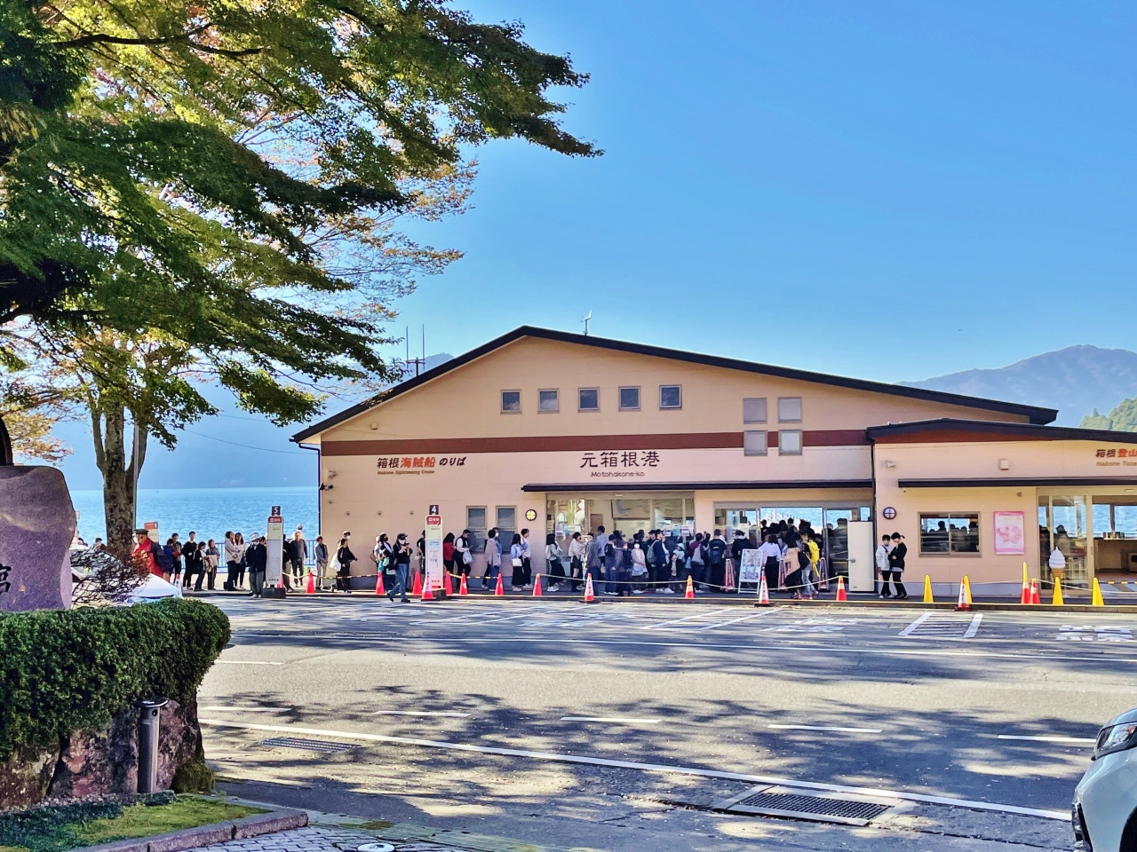 芦ノ湖に面している港です。湖畔からは富士山が見え、箱根神社の大鳥居が目印です。海賊船の船着き場の他、周辺にはお土産店や駐車場、バス停留所もあるので交通量も多く賑わっています。行楽シーズンの週末は大勢の人で船乗り場もバス乗り場も行列が出来ていて大混雑でした。