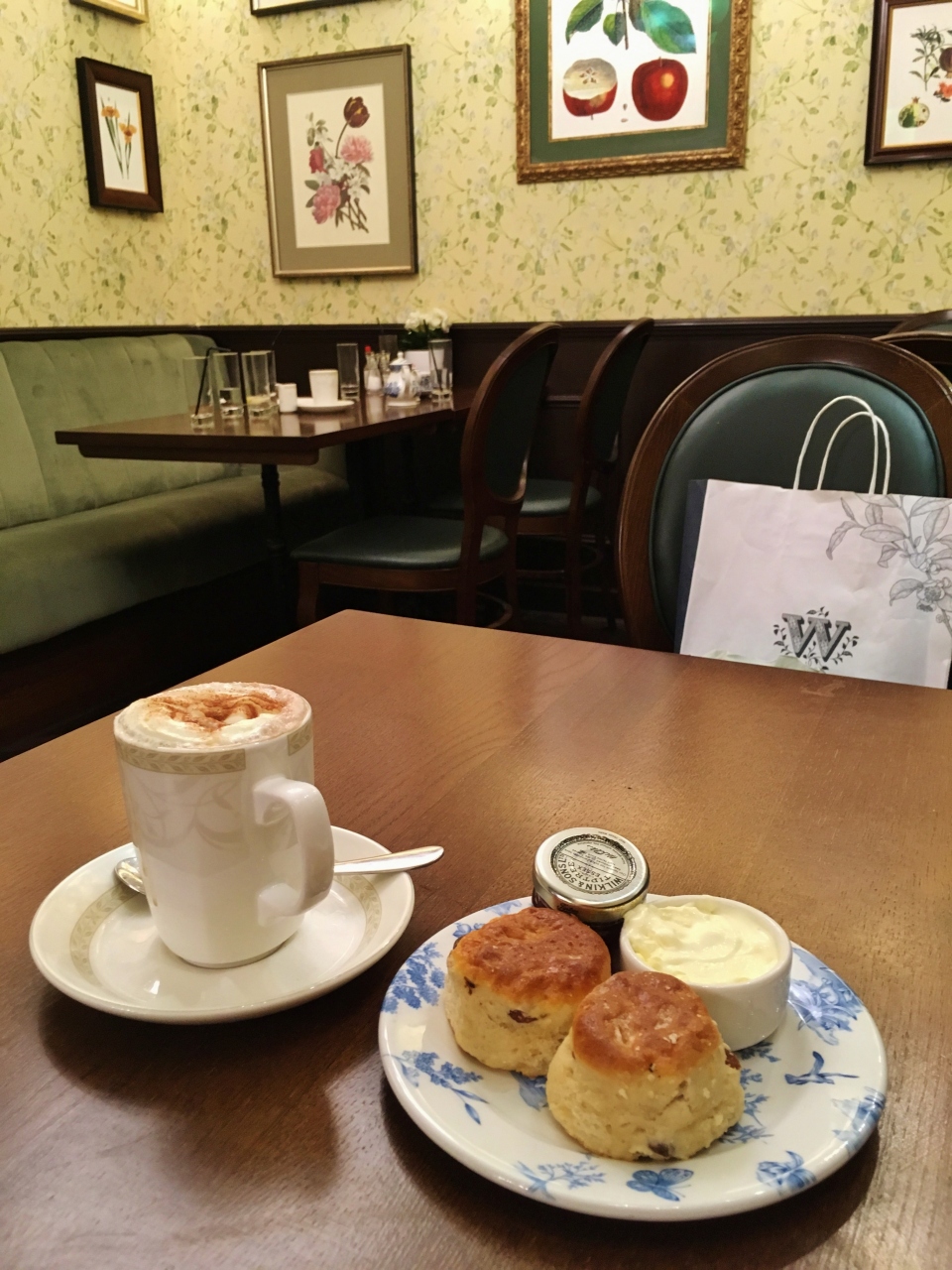 1909年の創業、店構えも当時とほとんど変わらないそうです。付近を散策中、カフェで休憩したくてこちらに入店しました。広い店内ですがお茶時で混雑していて、小部屋に案内されました。クリームティセットと飲物は紅茶でなく、なぜかホットチョコレートを注文していました。お客さんが帰ったので、途中から1人でお部屋を使うことができ、ゆっくりと過ごせました。