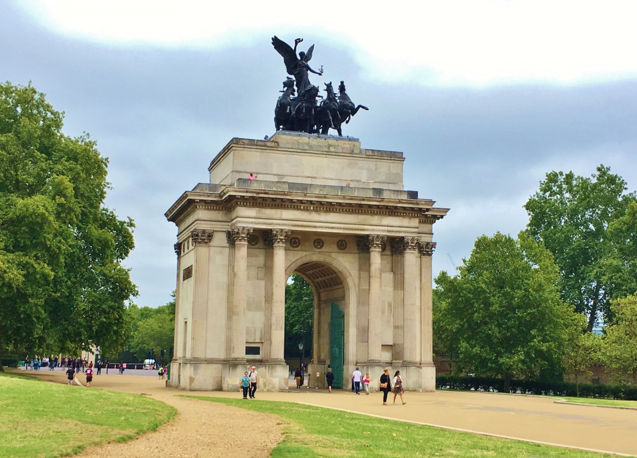 ハイドパーク・コーナーにある凱旋門です。1815年、ナポレオンとのワーテルローの戦いで勝利に導いた、ウェリントン卿を讃えるために建てられました。バッキンガム宮殿を訪れた際に通りかかりました。外から眺めるだけと思っていましたが、中には展示コーナーもあり、上にも登れます。