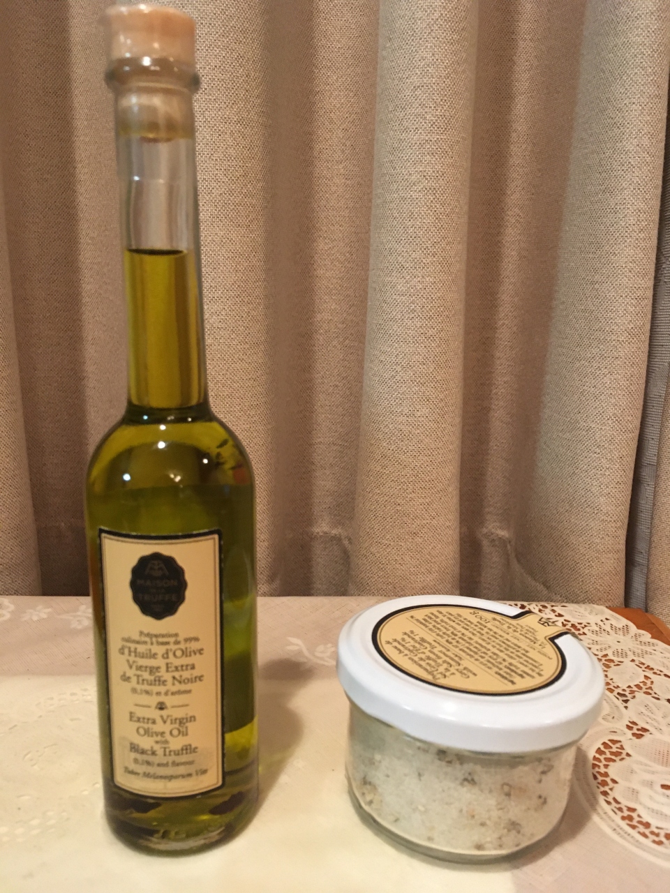 1932年創業の老舗トリュフ専門店で、パリにはマドレーヌ広場とシャンゼリゼの2店舗あります。レストランに併設されたショップで、黒トリュフ入りオリーブオイルとサマートリュフ入りの塩を購入しました。トリュフオイルはサラダやバゲットにかけて香りを楽しんだり、お塩はグリルや卵料理の仕上げに少しかけていただいたりと、普通のお料理が高級に感じられて食欲もわきます。