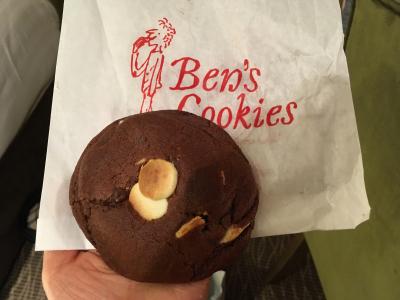 1984年ロンドンに1号店がオープンしてからたちまち人気が出て、現在ではイギリス全土に展開するクッキー専門店です。15種類以上あるクッキーの中、迷いながらトリプルチョコレートを注文。大きなしっとりクッキーの生地に沢山チョコレートが入り、とても食べ応えがありました。