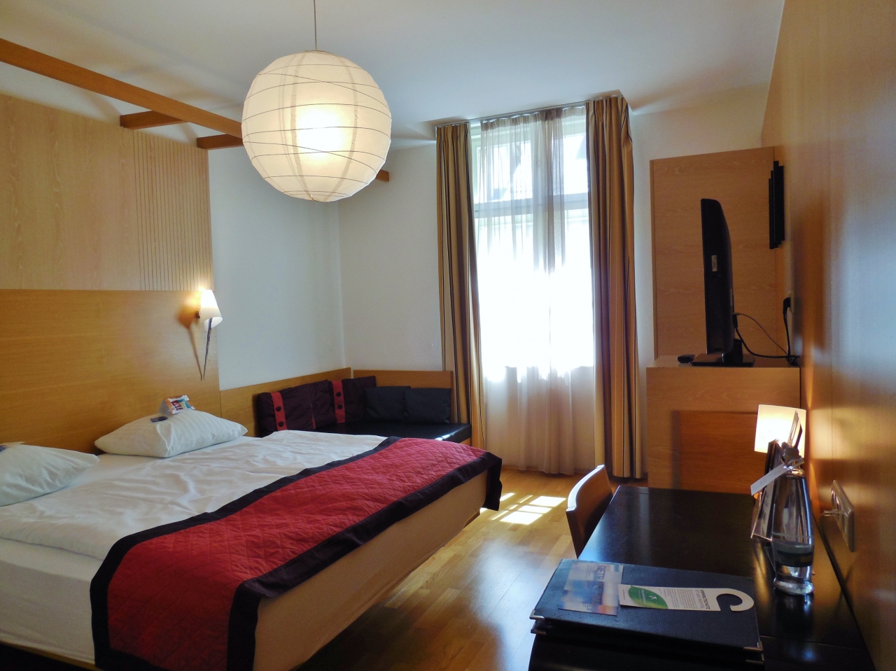 以前はリンク内のホテルを利用していましたが、去年プラハへの移動を考え中央駅前のこのホテルに宿泊したところ、交通もさほど不便に感じなかったため、昨年に続き今回も利用しました。部屋はダブルルームのシングルユースだったので広く清潔、冷蔵庫、コーヒーメーカーがあるのでお水を沸かすことができます。シャワーの使い勝手が良くないのが唯一の難点です。駅内にはスーパーやドラッグストア、パン屋等揃っているので買物にも便利でした。