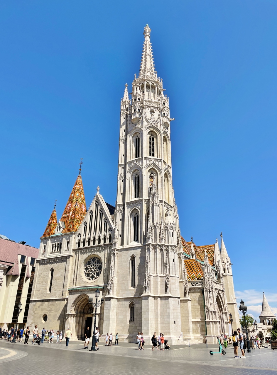 対岸からでも良く見える大きな教会で、ジョルナイ焼きのカラフルなモザイク屋根が印象的です。ハンガリー国王ベーラ4世により13世紀に建立されました。1541年トルコ軍侵略によりモスクに改築されましたが撤退後再びカトリック教会に復元、その後も増改築を繰り返し現在の姿は19世紀末に改修されたものです。1867年にエリザベートとオーストリア皇帝フランツ・ヨーゼフ1世の戴冠式が行われ、教会内にはにエリザベートの像が置かれています。