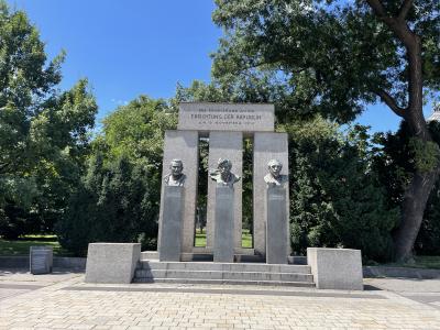 国会議事堂の左端にあります。近代オーストリアの発展に貢献した政治家ヤコブ・リウマン、ヴィクトル・アドラー、フェルディナンド・ハヌーシュ3人の胸像の記念碑です。観光客には馴染みがなく記念碑が目立たないこともあり、あまり注目されていないようでした。