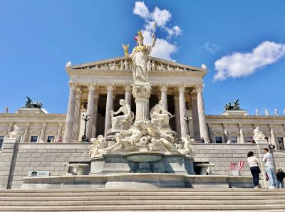 国会議事堂の正面にある彫像です。国会議事堂は1883年にギリシャ神殿をモチーフに建設されましたが、パラス・アテネ像は20年程経った1902年に建立されました。間近で見ると非常に大きく迫力ある彫像で、神殿風建築の議事堂と一体化して良い景観でした。