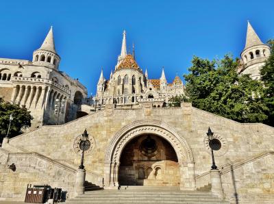 漁業組合により1895~1902年まで7年の歳月をかけてネオゴシック様式の砦が建設されました。魔女のとんがり帽子のような尖塔と回廊が特長です。1階は無料、テラスのある2階は有料ですが営業時間外は無料で行くことができます。日中は記念撮影する人であふれていましたが、朝早い時間だとゆっくりと対岸の景色を眺めることができました。ただ逆光になるので写真撮影には向かないかもしれません。