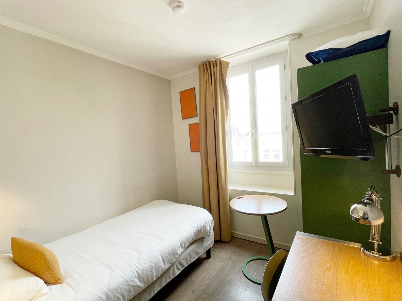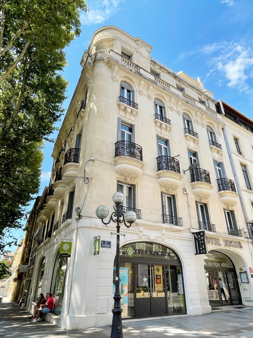 カルカソンヌ駅から徒歩5分程のところにある小規模なホテルです。フロントは皆さんフレンドリーでしたが、英語があまり話せないスタッフもいました。お部屋はシャワーのみでしたが、広々としていて女性好みの可愛い内装でした。通りに面した部屋だったので眺望も良かったです。冷蔵庫はありましたが、ポットはありませんでした。暑い日でしたがクーラー完備で涼しかったです。シテには歩いて20分くらいかかりますが、街の中心部を通って行くのでそれ程遠く感じませんでした。ただ、夜景を見に行く場合は不便かもしれません。周辺のホテルと比べ、値段もお手頃でした。