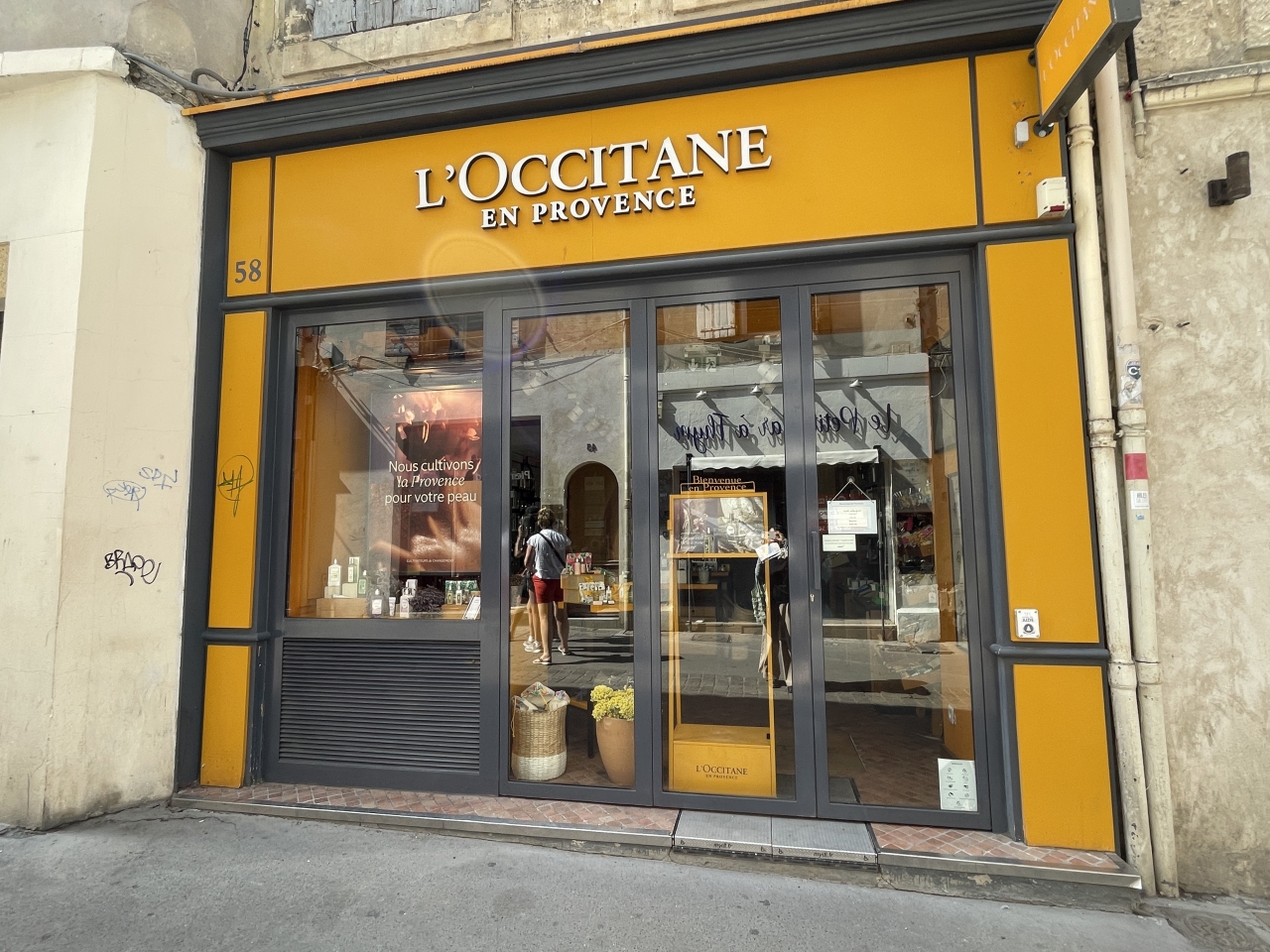 アルルの旧市街、お土産店やショップなどが立ち並ぶ通りの一角に店舗があります。1976年南フランスプロヴァンス地方で創業、日本でも良く知られるオーガニックコスメブランドです。訪れたのが日曜日でお店は閉まっていましが、ショーケースにはお馴染みの商品が並んでいました。