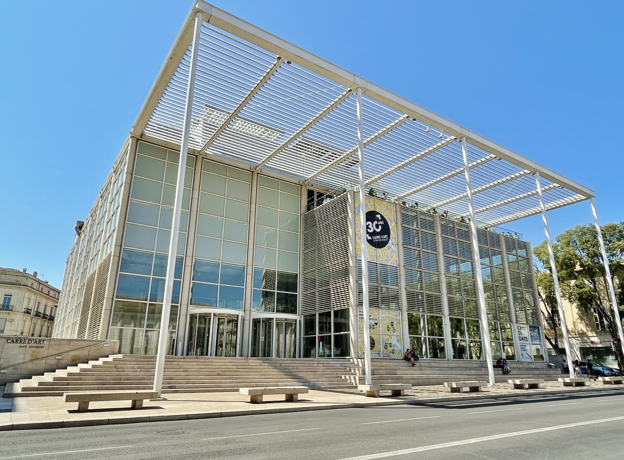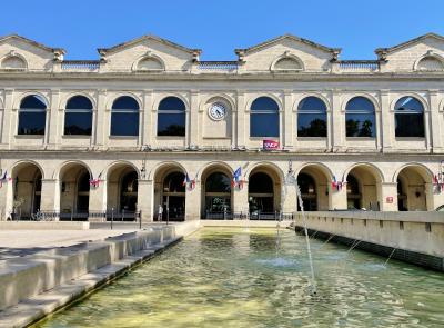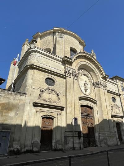 駅前に広がる並木道を進むとある噴水広場、プラディエの泉の右手に隣接する教会です。左側に円形闘技場があります。周囲には花々も綺麗に咲いていて良い景観でした。高い尖塔が見えて印象的だったので帰りに立ち寄りましたが、開いておらず外観を眺めただけとなりました。