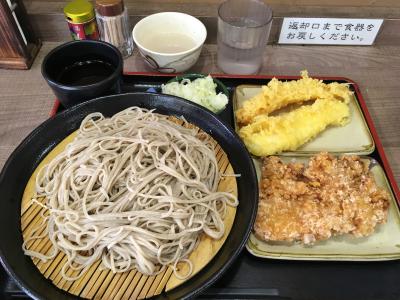 松本駅を出てすぐの所にある立ち食いそば屋さんです。信州そばを食べたかったのですが、時間の都合上選択肢がなくこちらのお店頂くことにしました。開店直後でしたが次々にお客さんが来て賑わっていました。店内はとても狭いので譲り合ってスペースを確保しました。おそばの量は1番少ない並みですが、それでも結構な量がありました。他に山賊焼き、エビ天とイカ天も注文しました。おそばはコシがありのど越しも良く、山賊焼きは肉厚で衣もサクサクで美味しかったです。お値段がとてもお手頃なのでビックリしました。