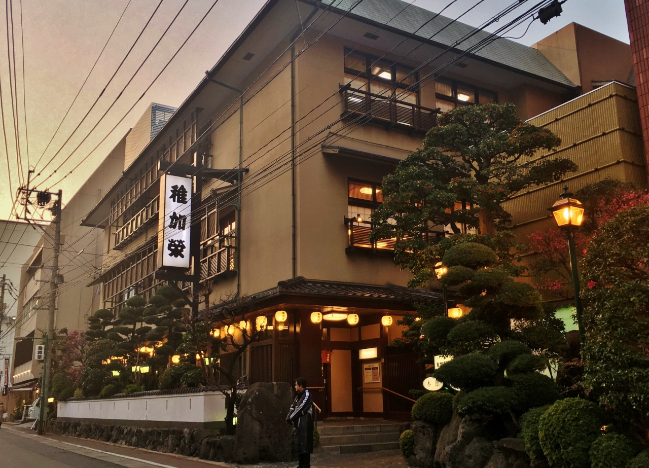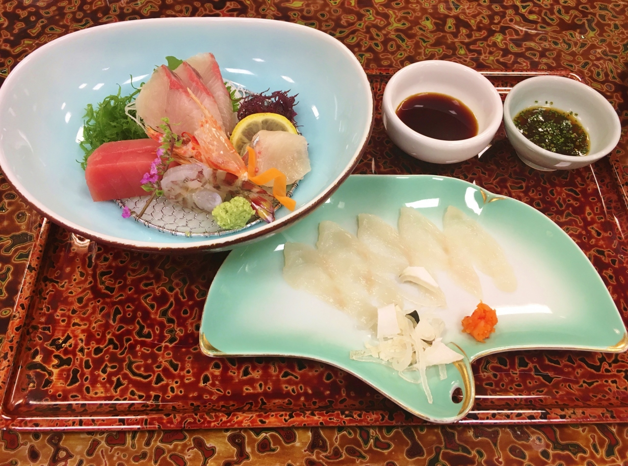 1961年創業の博多を代表する老舗割烹料理店で、旅館の様な和風の落ち着いた外観をしています。ツアーだったので3階席お大広間で夕食に会席料理を頂きました。クエ鍋やふぐ刺し、ふぐの白子焼き、あんこうの唐揚げ、雲丹の炊き込みご飯など、どれも良い食材が使われていて美味しかったです。食後に仲居さんが1階を案内してくださり、カウンター内にある巨大な生け簀に数多くの魚が泳ぐ光景には驚きました。玄関を入ってすぐにはイカの生け簀があり、注文が入ると網で揚げていました。九州場所が開催されると、お相撲さんも来られるそうです。明太子が有名とのことで隣接する売店で販売していましたが、デパートでも手に入ります。