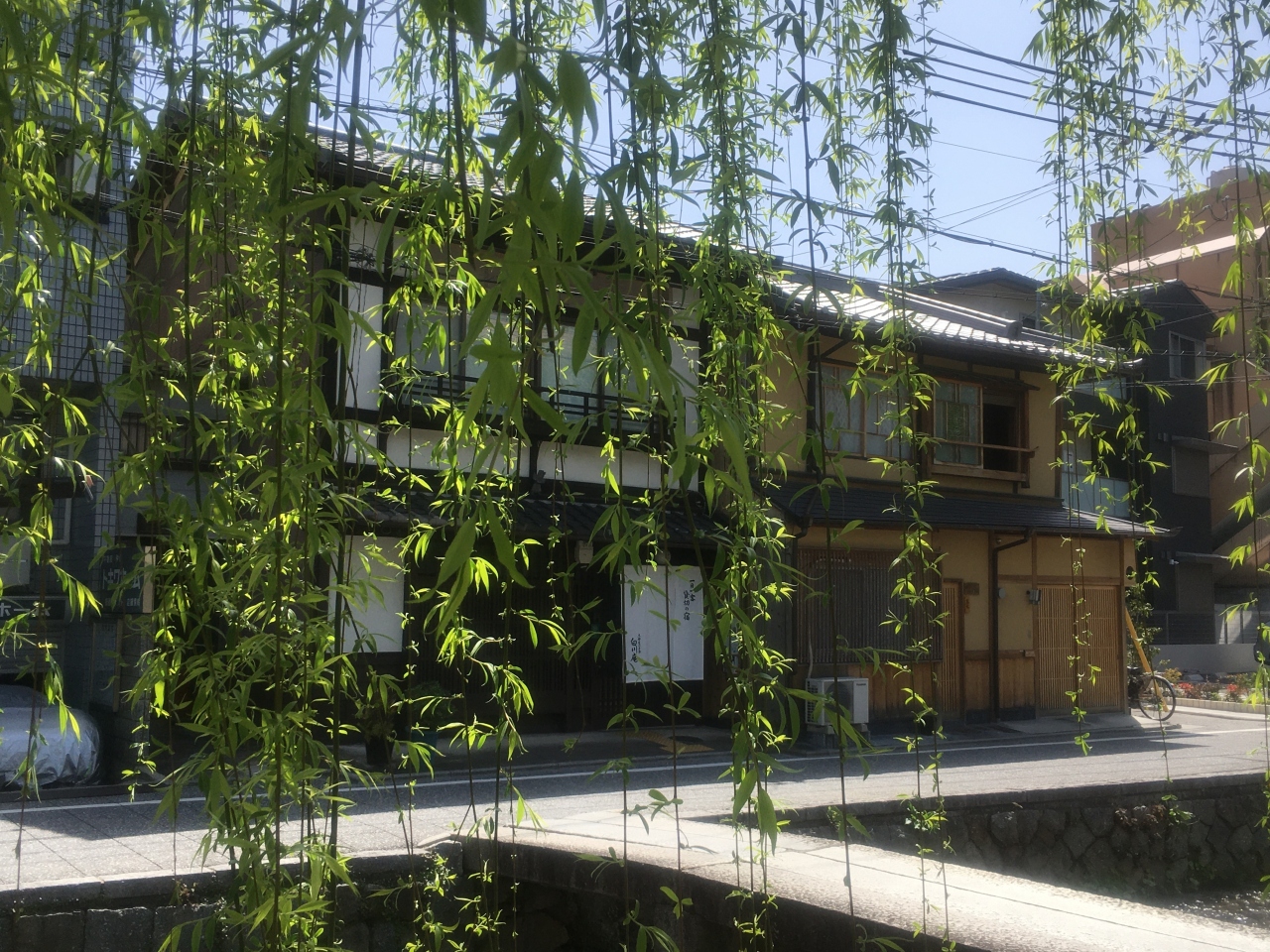 蹴上インクラインに行ったあと、南禅寺へ向かう途中に通りました。お店の前にはブルーのロゴがあり、晴れていたので目立っていました。古民家を改装した造りとなっていて、高い天井でオシャレな内装です。奥の店舗入口で注文しますが、人気のようで注文にも商品の受取にも結構並びました。暑かったのでアイスカフェオレを注文、席でいただきました。