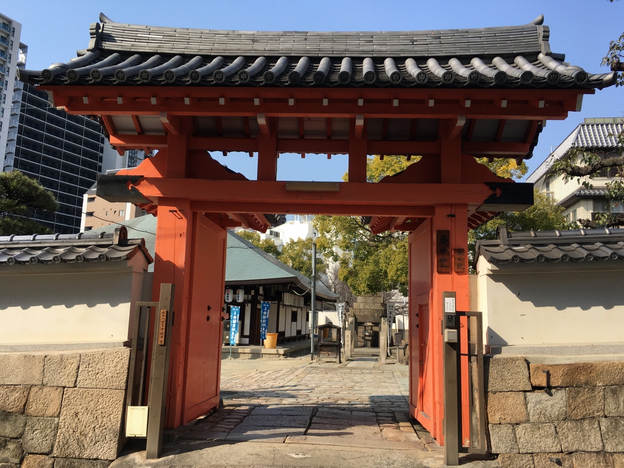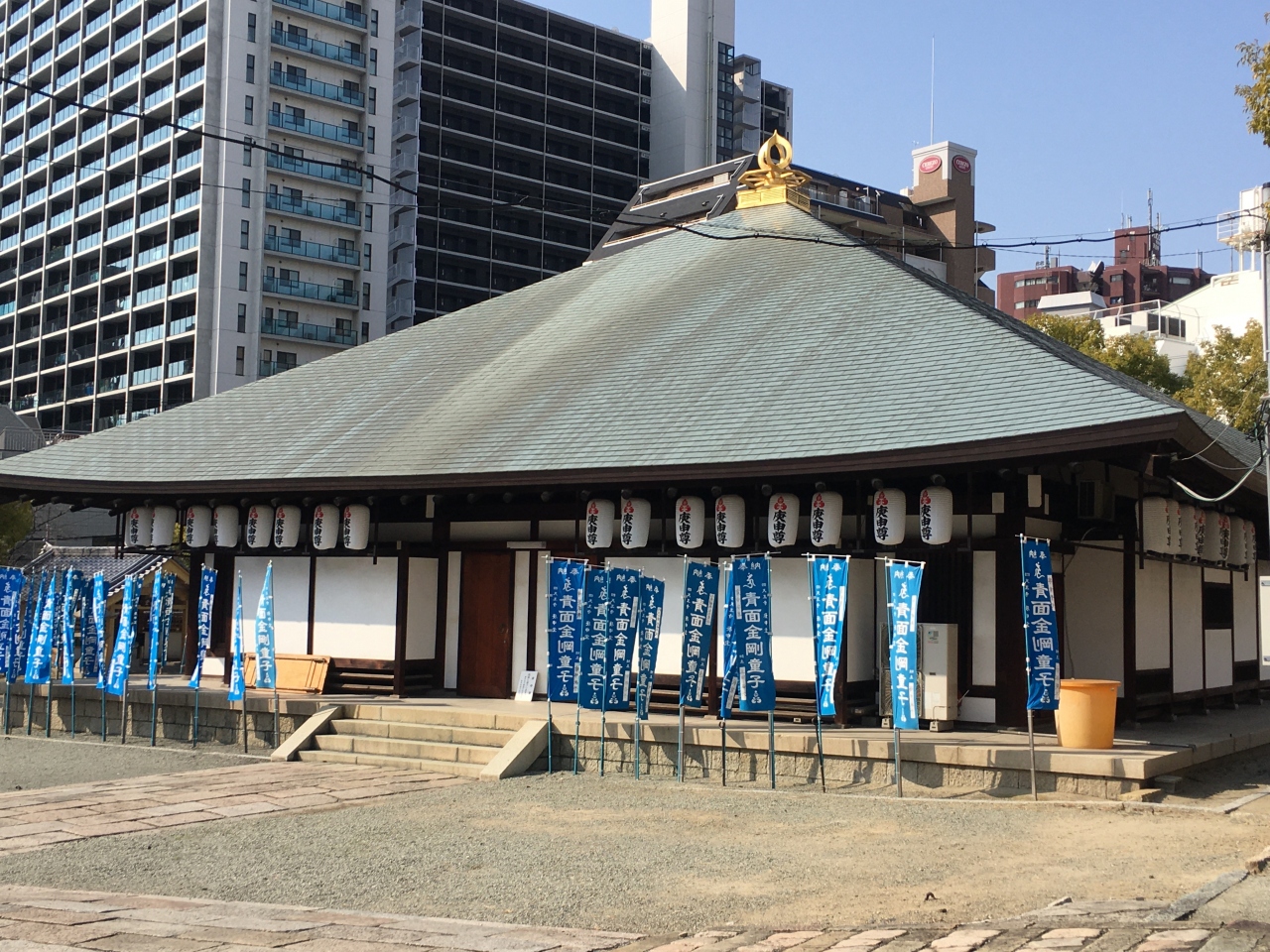四天王寺の南大門から南へ下ったところにあります。四天王寺へお参りに行った際、立ち寄りました。日本最初の庚申尊出現の地といわれ、京都の八坂庚申堂、東京の入谷庚申堂と並び、日本三庚申のひとつに数えられています。庚申の日とその前日(宵庚申)に本尊に祈願すれば、必ず一願が叶うと尊崇されてきました。境内の三猿堂は「病に勝る」「魔も去る」と云われ、痛みに効くとも言われています。
