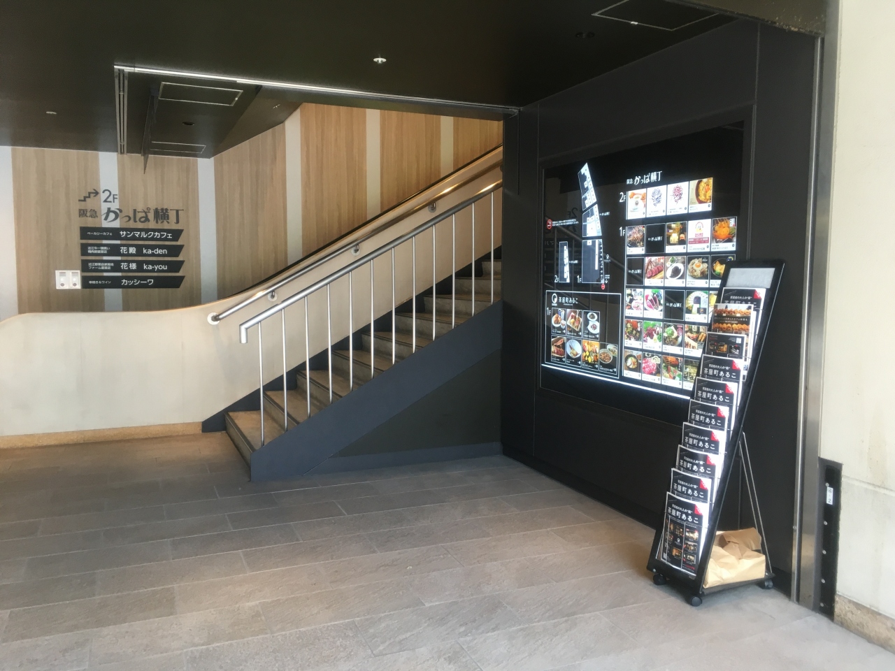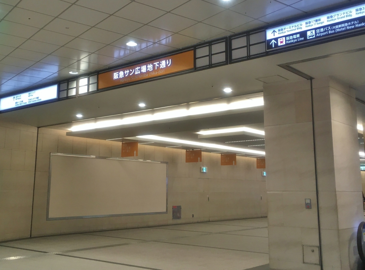 阪急百貨店地下の北側出口をでるとあります。昔からある地下街で、ヘップファイブやホワイティ梅田から阪急百貨店へ向かう途中に時々通ります。中心地ですがいつもそれほど混んでいない印象です。飲食店はお好み焼のぼてじゅう、ラーメンなど人気チェーン店も入っています。また、阪急百貨店で販売しているデパ地下人気食品の並ぶ列にもなっていて、週末などは時々行列を見かけます。