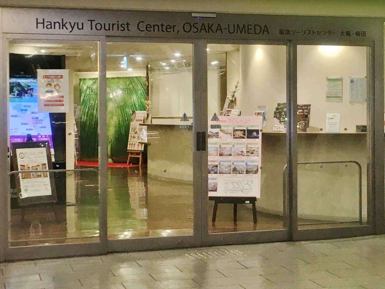 阪急電車の3階ホーム正面出口からエスカレータで1階まで下った目の前にあります。あまり目立たない外観なので気づきにくいです。阪急電鉄が運営していて、観光や交通案内など各種パンフレットも置かれていて、乗車券の販売もされています。観光案内所といえばJR大阪駅を利用する人が多いかもしれませんが、認知度が低いためか混雑も少ないです。場所柄、阪急電車を利用する人には特に便利です。