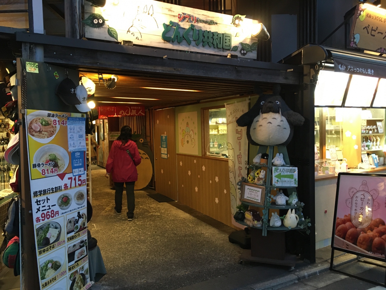 七味唐辛子の名店「七味家本舗」の向かい、少し奥まったところにあります。近くにある二寧坂店のリニューアルと同時に新しくオープンしたそうです。清水寺に行く途中、通りかかりました。店内は結構広く奥まで進むとお庭があり、ジブリ関係のグッズも沢山揃っています。訪れたお客さんも写真を撮ったりして楽しんでいる様子でした。