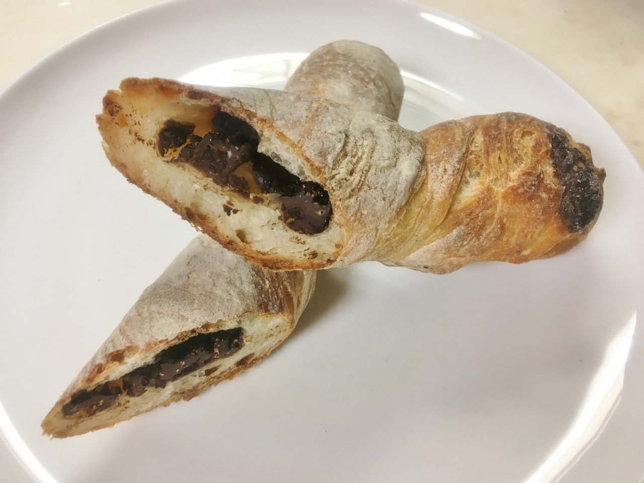 京都で有名パン屋さんの大丸デパ地下にある店舗です。お店の中にはイートインスペースもあります。時間が遅かったこともあって残ったパンの種類は多くありませんでした。人気と書かれたバゲットショコラを購入しました。パンの生地は思った以上にしっかりしていて硬く嚙み締める感じです。半分に切ってみると、チョコレートがぎっしり入っていました。シンプルですが、スイーツにもなるバゲットでした。