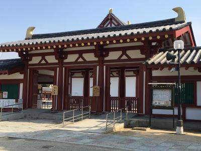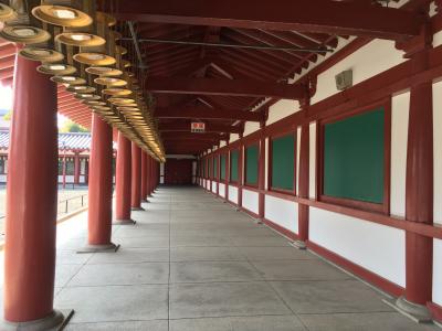 中心伽藍を囲んでいる回廊です。直線に並ぶ中門、五重塔、金堂、講堂を回廊が囲む形式となっていて、日本で最も古い建築様式の一つです。コンクリート製ですが、色鮮やかな朱色の柱と金色の灯篭が並ぶ様子はとても美しく見応えがあります。訪れた時は人も少なく、回廊に一人で立っていると厳かな雰囲気が感じられました。