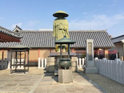四天王寺の極楽門の手前左手にある見真堂は浄土真宗の開祖である親鸞聖人を顕彰し建立され、親鸞聖人の見真大師という名前から、見真堂と名付けられました。その見真堂に隣接して立っている像です。大きくて立派な像で、少し離れた場所からでも目立っています。11月28日には講堂と見真堂の親鸞像前で、親鸞聖人の祥月命日法要が執り行なわれます。
