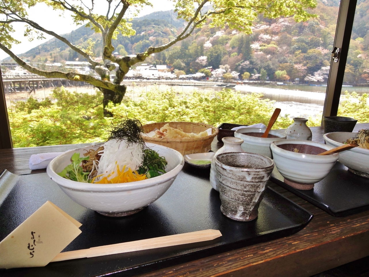 嵐山の渡月橋を渡った先にあるお蕎麦屋さんです。趣ある和風建築や日本庭園は京都ならではの雰囲気を満喫でき、落ち着いた内装の中ゆっくりとお蕎麦を頂けます。野菜が好きなので、京のやさいそばと季節の天ぷら盛り合わせを頂きました。彩豊かな野菜が入ったお蕎麦は十割細麺でサラッと軽く、天ぷらもサクっと仕上がっていました。2階のカウンター席で、桂川と渡月橋を眺めながらいただくと一層美味しく感じました。