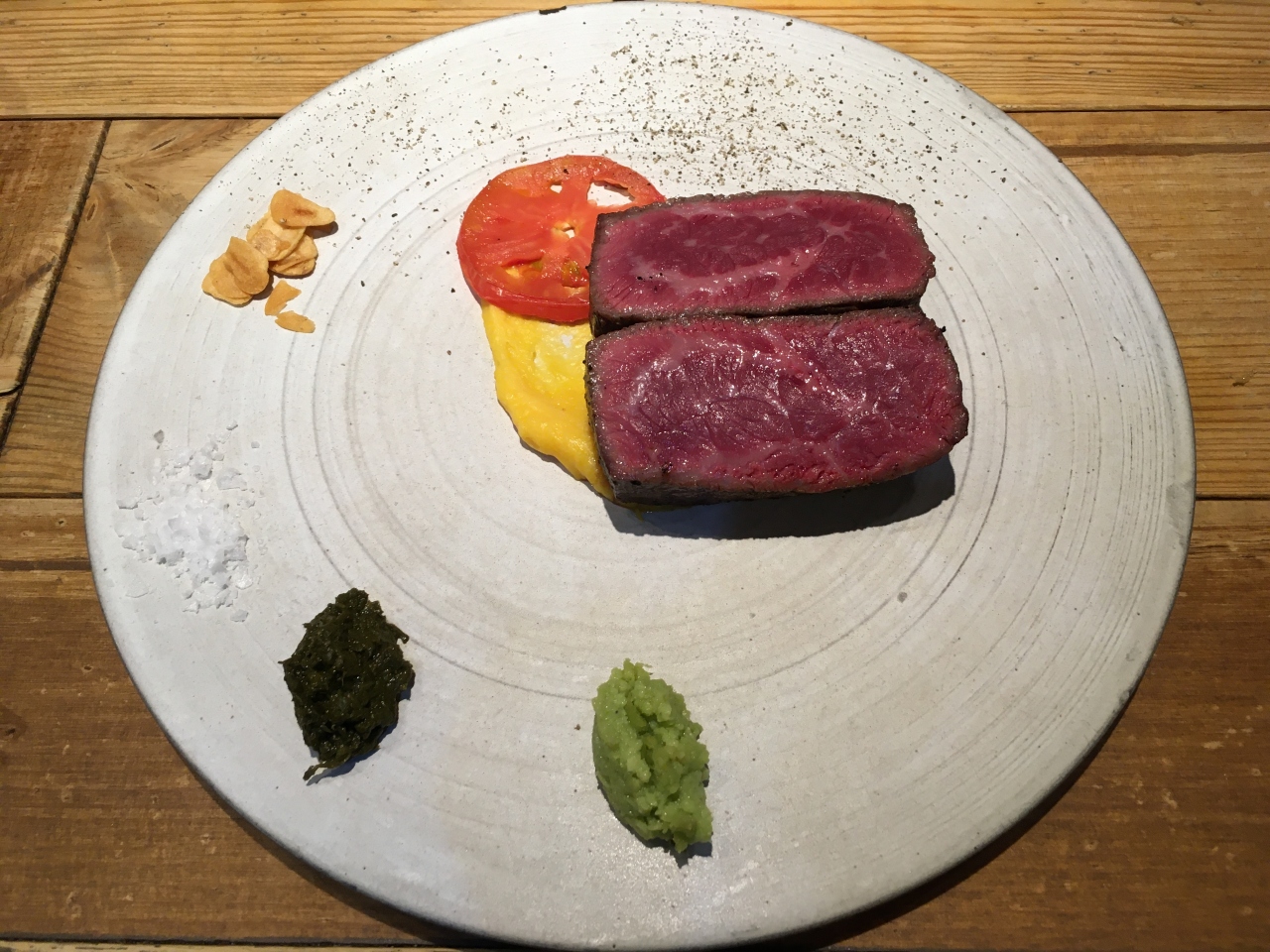 お初天神の商店街から一本入ったところのビル6階にあります。店内は結構広く、オープンキッチンで料理を作っているところが見えます。タバコは喫煙席と禁煙席とで分煙されていました。おおいた豊後牛の炭火焼き、マグロのフレッシュカルパッチョ、てんけいこ(巨大な椎茸)の炭火焼バターソテー、デザートにフォンダンショコラ等いただきました。お肉は赤身で看板メニューだけあって美味しかったです。盛り付けもオシャレで店員さんも活気があって雰囲気も良かったです。
