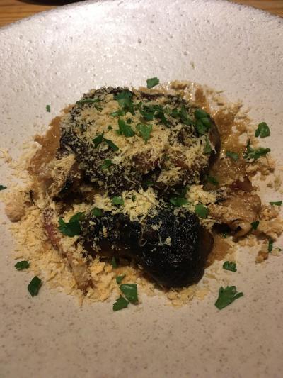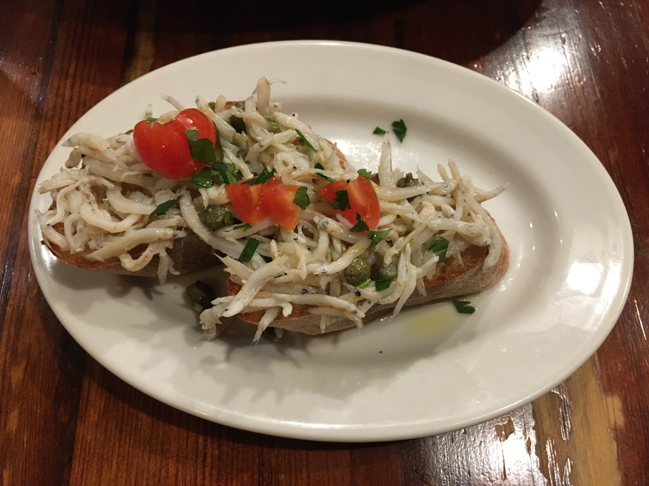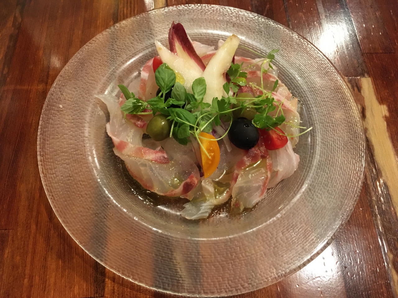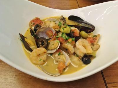 窯焼きピザが有名なアレグロの系列店で、シーフードメインのイタリアンです。お初天神通りから少し外れた路地のところにあり、夜だったので暗くて周囲が見えずお店の方に出てきてもらいました。お店は2階建てで、2階に案内されました。お店は狭いですが、座席間隔もあり、居心地は悪くなかったです。アクアパッツァやシラスブルスケッタ、海鮮のカルパッチョなどを注文しました。シラスのブルスケッタはバケットにシラスがたっぷり、日本人好みの味付けで美味しく印象に残りました。他のお魚料理も丁寧につくられていて、カジュアルな雰囲気の中気軽に利用できるのが良かったです。
