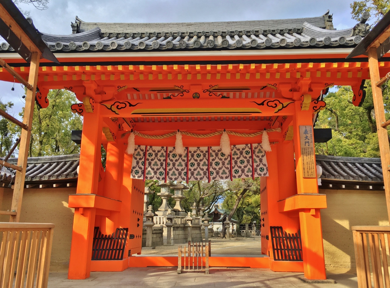 阪神電車の西宮駅から徒歩5分程南に下ったところにあります。日本全国のえびす様をおまつりする神社の総本社で、西宮のえべっさんとして親しまれています。また、1月10日の福男を選び(正式な名称は「開門神事福男選び」というそうです)でも有名な神社です。新型コロナを考慮してお正月前に訪れました。十日戎やお正月は大勢の参拝客がありますが、この時期は閑散としていてゆっくりと参拝できました。