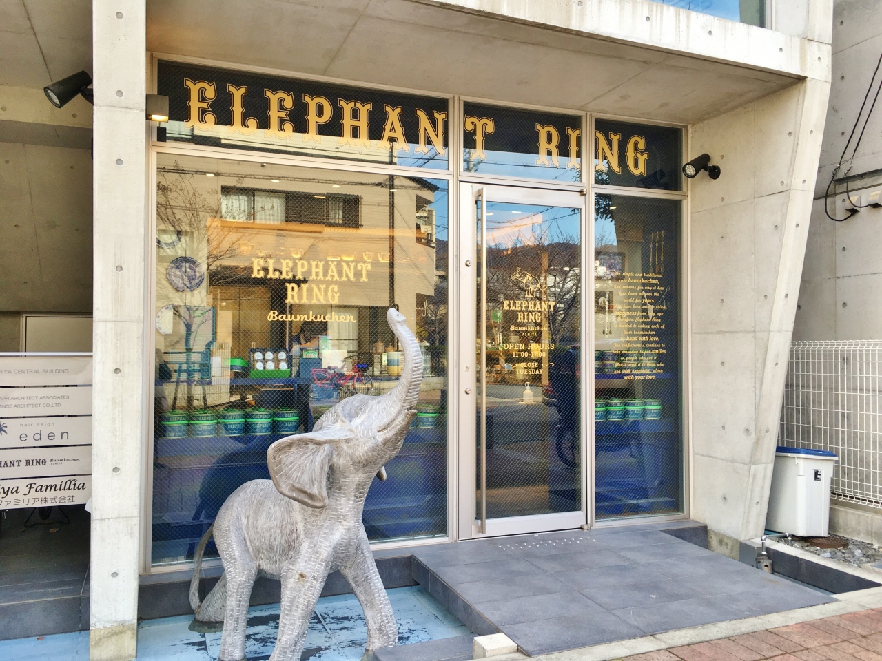 芦屋にあるバウムクーヘン専門店です。阪神芦屋駅とJR芦屋駅の中ほど、お店前の通りからは教会が見えてとても雰囲気が良い場所にあります。お店前に置かれているかわいい象が目印で、店名は象の鼻でできる輪を見た人は幸せになれるという言い伝えから名付けられたそうです。香料・膨張剤・乳化剤を一切使わず原材料にこだわり続け、職人が手作業で焼いているとのことです。自宅用とプレゼント用に日持ちするバウムラスクと、カットしたバウムクーヘンを購入しました。バウムラスクはバウムクーヘンの層がちゃんと入っていて、とても薄くパリッとした軽い食感、ちょっとしたプレゼントに丁度良いサイズです。店員さんも親切で試食もどんどん勧めてくれます。商品の味が前もってわかるので安心して購入できました。