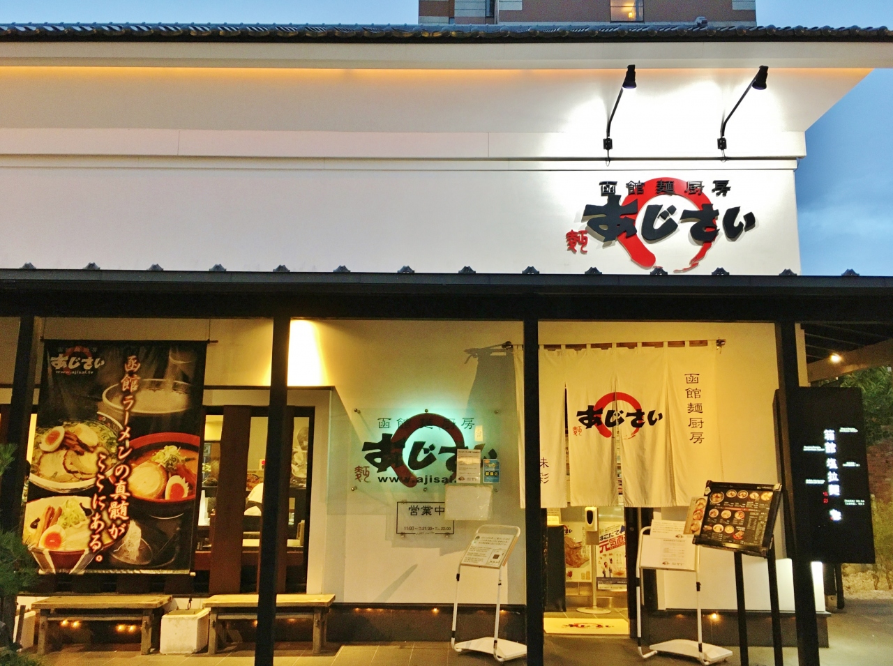 ホテルラビスタ函館ベイに隣接した「函館ベイ美食倶楽部」にあります。外食でラーメンを食べることは殆どないですが、函館に来たなら是非と思い来店しました。入口の券売機で食券を購入するシステムです。並ぶこともあるようですが、平日18時半ごろで8割程席は埋まっていました。注文した塩ラーメンは透き通った色でお味もあっさり、こってり系が苦手なので塩ラーメンにして正解、美味しかったです。