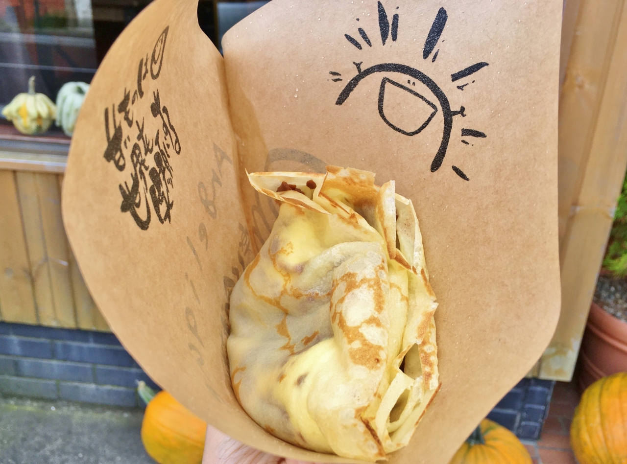 函館で人気のスイーツ店です。お客さんもひっきりなしに訪れていました。小さくて狭い店内のショーケースにはケーキもありましたが、皆さんクレープを注文していました。苺のミルフィーユが人気の様ですが、期間限定メープルとハチミツにしてみました。賞味期限は30分とのこと、もちもちの生地にクリームがたっぷり、ナッツの食感が加わって美味しかったです。テイクアウトのみなので、元町公園近くのベンチで頂きました。