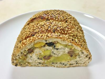 生駒近鉄百貨店2階にあるスイーツ&パン屋さんです。奈良では他にも店舗があって有名なためか、お客さんも多かったです。それほど広くない店内ですが、パン以外にケーキ等スイーツも色々と揃っています、訪れた時はパンを購入する人ばかりでした。季節のパンが目に留まって安納芋ブレッドを購入しました。さつまいもと小豆が沢山入り、香ばしいゴマがアクセントになって美味しかったです。