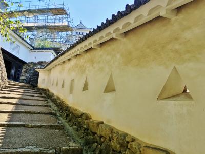 姫路城の天守閣を見学し、外に出て下って行くと通りかかる大きな広場です。広場は天守閣の真下にあるのでそびえ立つように見え、とても迫力があります。絶好の撮影スポットで、観光客は皆さんここで記念に写真を撮っていました。お天気が良かったので晴天の青空に白いお城が映え美しかったです。