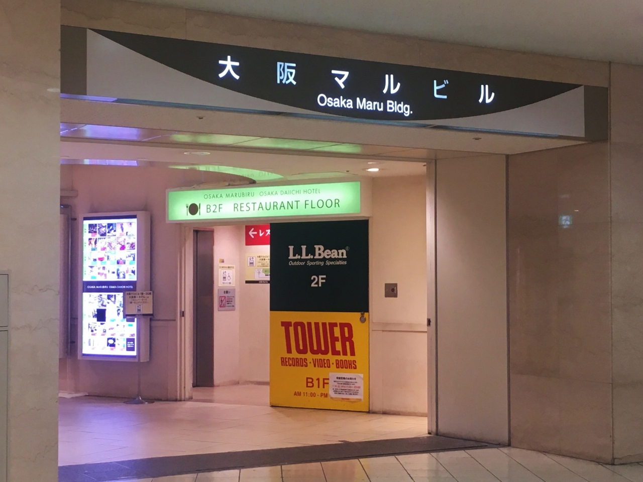 大阪駅前にありますが、地下からアクセスする場合は、ディアモールを通っていくとすぐ近くで、雨の日でも安心して歩けます。マルビル内は大阪第一ホテルが殆ど占めていますが、地下にはリーズナブルな飲食店や、タワーレコードやスターバックスコーヒーもテナントで入っています。