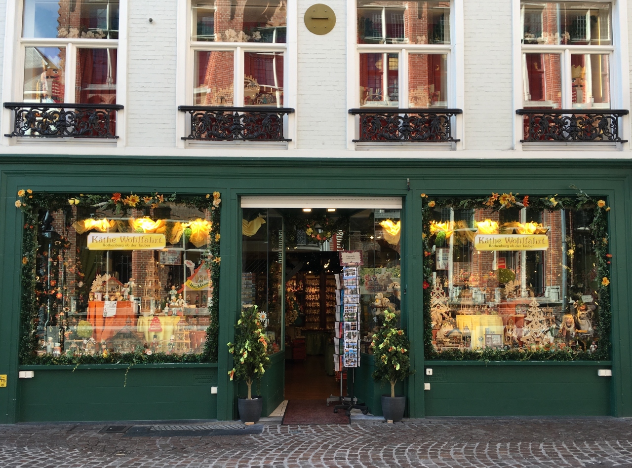 ドイツのクリスマスデコレーション専門店で、シーズンだけでなく1年中クリスマス商品を販売しています。またくるみ割り人形など伝統的な工芸品、レースやゴブラン製品なども豊富に飾られていて、店内はきらびやかで可愛いものがあふれています。ウィンドウのディスプレイも素敵で目立っているので、多くの人が眺めていました。