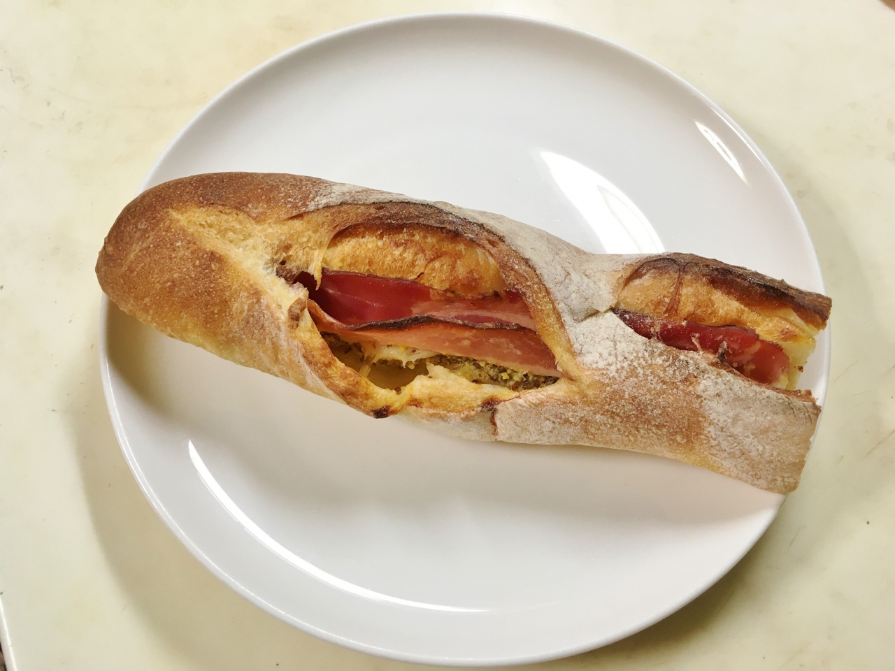アンデルセングループで、近鉄百貨店が専用に開発したベーカリーブランドです。生駒の近鉄百貨店1階に入っていて、併設のカフェもあり店舗は広いです。シンプルなパンが多い印象で、バゲットにベーコンが入っているのが珍しく思い購入しました。バゲットはふんわり柔らかく好みとは違いましたが、これはこれで美味しくいただきました。