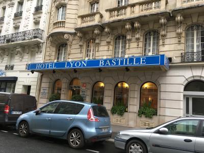空港からバスでリヨン駅にリヨン駅に到着、歩いて2,3分のところにあります。トリノ行列車の時刻が早い為利用しました。朝10時過ぎに荷物を預かってもらうためホテルへ行ったところ、後20分程で部屋が用意できるとのことで待つことにしました。その間コーヒーを持ってきてくださり、電気ポットを借りたいと伝えると快く貸して下さりと、とても親切な対応でした。部屋は狭くスーツケースを広げるのがやっとでしたが、反してバスルームはとても広かったです。高層階で大通りに面していたので眺めは良かったです。駅からホテルへの道にモノップ、有名なパン屋さんも近くに何軒かあり便利でした。